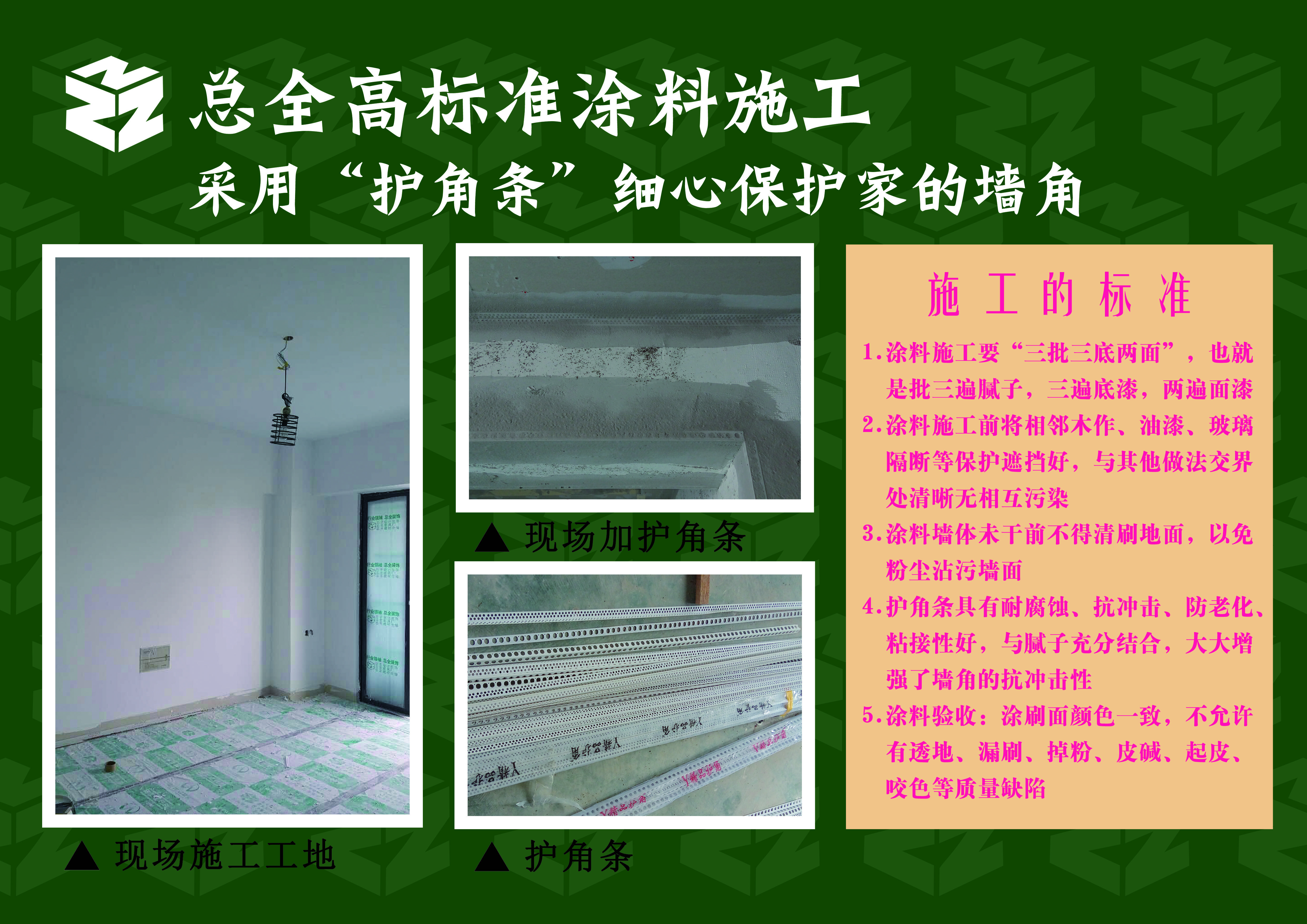 總全原創班組責任制,材料中心統一配送、節省中間環節,施工工藝嚴格把控,全程負責到底,為您省心!